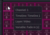 To map a layer to a particular DMX channel, just drag from that channel to the layer you want to map. In the background this will set the Universe and Channel variables.