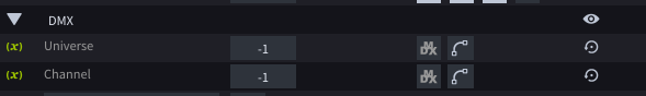 By default, every layer has **Universe** and **Channel** properties in the **DMX** variable group set to -1. This means that this layer is not controlled with DMX.