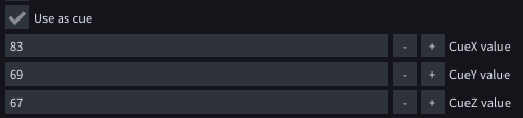 How Cue triggers work is that if the values of those 3 DMX channels match the CueX, CueY and CueZ values of a particular Cue, that Cue is going to be triggered.