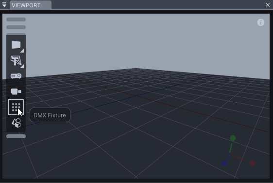 After creating a DMX Fixture, which we learned in the [Fixture Editor chapter](https://docs.lightact.com/dmx/dmx-out/fixture-editor), let's add the fixture object to the *Viewport*. Click and drag the Fixture icon from the Toolbar to the Viewport floor and choose a Fixture model.