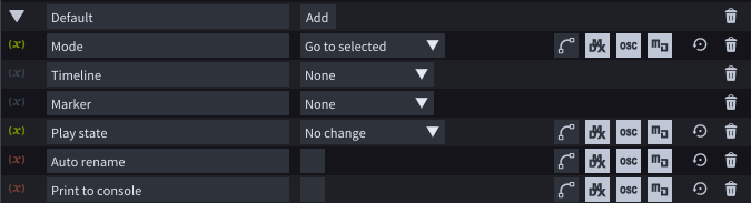* **Marker**: select the marker to which you want to jump to. This value is ignored if Mode is anything other than *Go to selected*.