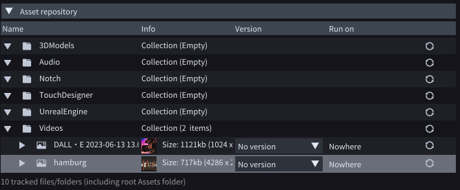 If you have assets without version suffixes and assets with them, all of them will be listed in the Version dropdown. The one without the suffix will be listed as ‘No version’.