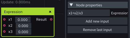 Introducing an Expression Node with default float inputs, allowing users to create custom equations and add inputs dynamically for enhanced flexibility.