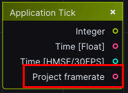 Integrate Project framerate information into nodes by adding an output pin to the Application Tick node or creating a new Project framerate node.