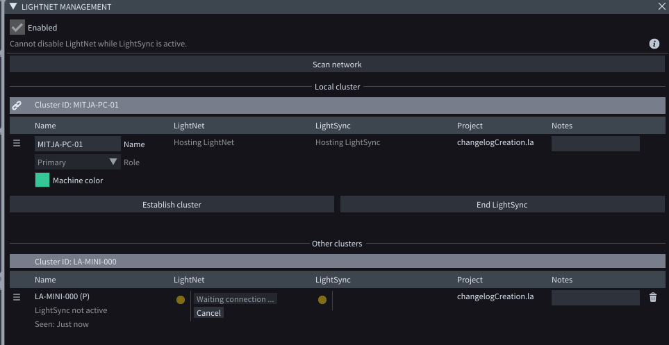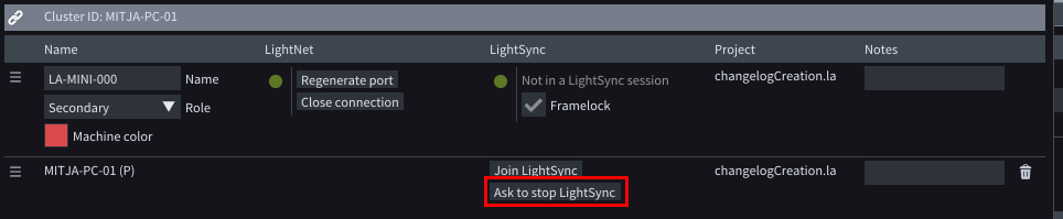Added an "End LightSync" button in the LightNet Management Sync column, allowing non-primary computers to stop a Primary from hosting a LightSync session.