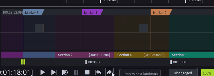 The playhead will now snap to the nearest section beginning or end, marker, or layer boundary within the snap area on the timeline. If none are present, snapping will occur to the closest vertical line. This enhances precision when jumping across the timeline using the left mouse button.